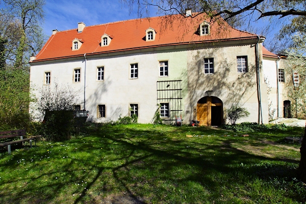 Der Westflügel mit der Toreinfahrt ist zusammengesetzt aus einem ursprünglich kürzeren Bau und dessen Verlängerung um eine Fensterachse im 18. Jahrhundert. Nach Abriss der an das Schloss angesetzten Wirtschaftsgebäude wurde der Westflügel in seiner Länge dem Ostflügel angeglichen. Beeindruckend ist der Dachstuhl über dem älteren Gebäudeteil, der nach dendrologischen Untersuchungen um 1613 entstand. Der Bau selbst ist jedoch dem 17. Jahrhundert, also der Zeit der schleinitzschen oder kötteritzschen Gutsherrschaft zuzuordnen. Im Erdgeschoss tritt eine kreuzgratgewölbte Halle mit gequaderten Sandsteinsäulen besonders hervor. Ihre östliche Wand ist schräg nach innen versetzt, um Raum für die Durchfahrt zu schaffen. Im Obergeschoss beeindrucken Reste einer mit floralen Motiven bemalten Holzbalkendecke.